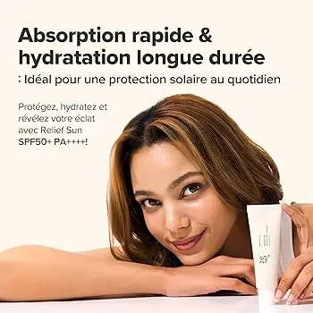 Le Relief Sun Rice + Probiotics SPF50+ PA++++ de Beauty of Joseon protège efficacement la peau contre les rayons UV tout en apportant hydratation et confort au quotidien. Sa texture crème légère s'absorbe instantanément sans laisser de film blanc ni effet gras, offrant un fini naturel et lumineux.